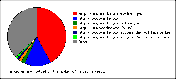 | 13 | 0.01% | Apr/22/26 11:27 AM | /wp-login.php?redirect_to=http://tomarken.com/wp-admin/ |